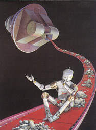 Некоторые космологи предполагают, что сложнейшая Вселенная возникла буквально из «ничего». Однако само это «ничто» представляет собой квантовомеханический вакуум (на рисунке изображенный в виде сложной машины), для описания которого требуются многие страницы сложных математических выкладок.Другой недостаток теории Гута — это то, что в ней ничего не говорится о происхождении перегретой и расширяющейся материи. Гут проверил совместимость своей инфляционной теории с тремя гипотезами происхождения Вселенной. Сначала он рассмотрел стандартную теорию большого взрыва. В этом случае, по мнению Гута, инфляционный эпизод должен был произойти на одной из ранних стадий эволюции Вселенной. Однако эта модель ставит перед нами неразрешимую проблему сингулярности. Вторая гипотеза постулирует, что Вселенная возникла из хаоса. Некоторые ее участки были горячими, другие — холодными, одни расширялись, а другие сжимались. В этом случае инфляция должна была начаться в перегретой и расширяющейся области Вселенной. Правда, Гут признает, что эта модель не может объяснить происхождение первичного хаоса.