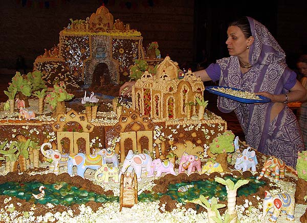 вкусного вегетарианского торта, который является уменьшенной копией священной горы Говардхан,