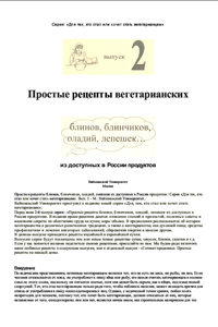 - Вторая часть брошюры с вегетарианскими рецептами, составленными на основе привычных для нас продуктов, которые доступны в большинстве постсоветских стран.