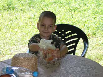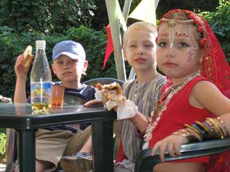 Люди, привлеченные пением древних индийских бхаджанов (песен преданности Богу), игрой на традиционных музыкальных инструментах и преданными в вайшнавской одежде, казалось, обретали желанную тень и прохладу среди раскаленных солнцем склонов Поля. Наибольшим вниманием пользовалась палатка с прасадом - пищей, приготовленной по традиционным рецептам индийской кухни. Самоса, халава, напиток из листьев мяты, вегетарианские пиццы - это далеко не полный перечень представленных лакомств. Сладкоежки могли вдоволь побаловать себя сладкими шариками с кокосом, вегетарианскими тортами по оригинальной рецептуре и пирожками с яблочным муссом и корицей.