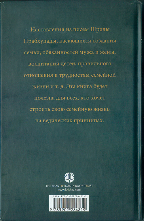 В книгу «Грихастха ашрам: наставления о семейной жизни» вошли наставления о духовной семейной жизни, собранные из писем Его Божественной Милости А.Ч. Бхактиведанты Свами Прабхупады.