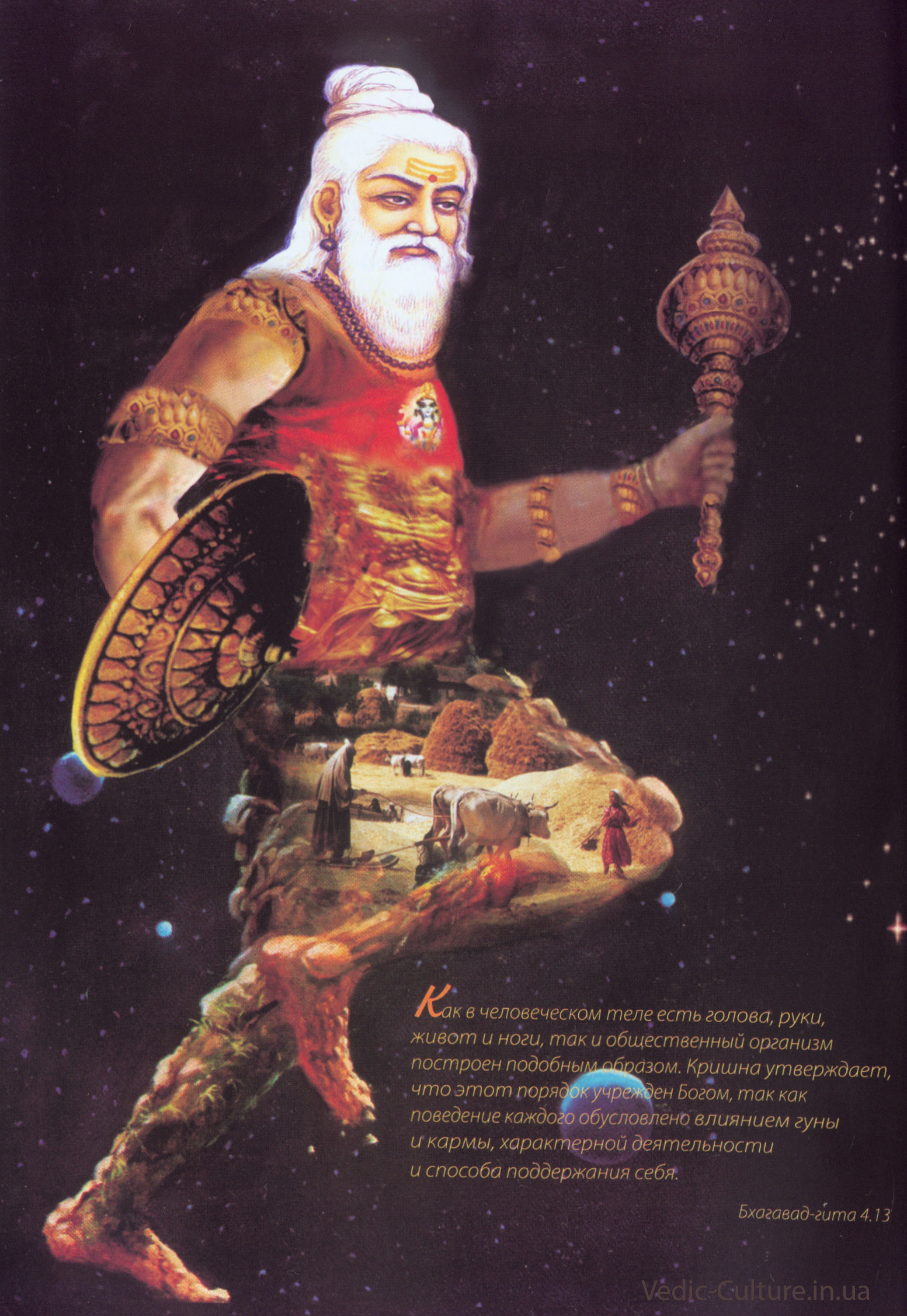 «Как в человеческом теле есть голова, руки, живот и ноги, так и общественный организм построен подобным образом.» Бхагавад-гита, 4.13