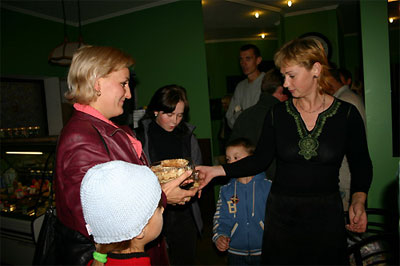 По закінченні програми торт розрізали, шматочки упакували і роздали всім присутнім. Кожен взяв з собою часточку свята, часточку вайшнавської культури, частинку знань про Бога. Люди щиро дякували.