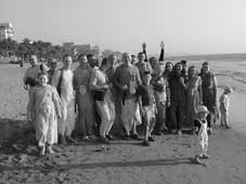 В Чоупатти нас очень тепло принимали, чуть ли на руках не носили. Ятра там очень дружная. Меня поразило то, что утром на мангала-арати 4:30 со всех концов города (а город довольно большой, к тому же добираться с окраин очень трудно) съезжаются грихастхи. После приветствия Божеств они едут на работу, и вечером в 8:50 они приезжают, чтобы попрощаться с Божествами. Очень необычная и трогательная церемония: Божества в ночных одеждах, у них развеваются волосы, освещение плавно с дневного меняется на сумеречное, киртан... Преданные съехались со всех концов города на 10 минут, чтобы пожелать Господу спокойной ночи... После прощания все ужинают и едут домой. Но самое удивительное то, что в 4:30 все эти семьи – снова в алтарной. Для меня до сих пор остается загадкой: когда они спят?