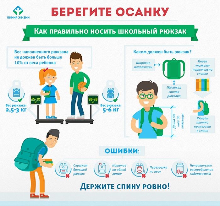 « Носить рюкзак нужно сразу на обеих лямках. Ведь когда мы вешаем увесистую сумку на одно плечо, едем с нею в трясущейся маршрутке, здоровье нашего позвоночника, а значит, и всего тела разрушается очень быстро.»