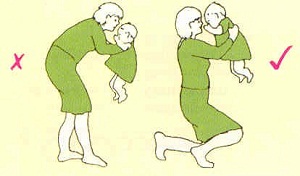 «Поднимать детей нужно прямо перед собой, с ровной спиной, без прогиба или округления.»