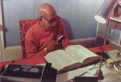 Шрила Прабхупада, диктующий перевод и комментарии к стихам "Шримад-Бхагаватам".