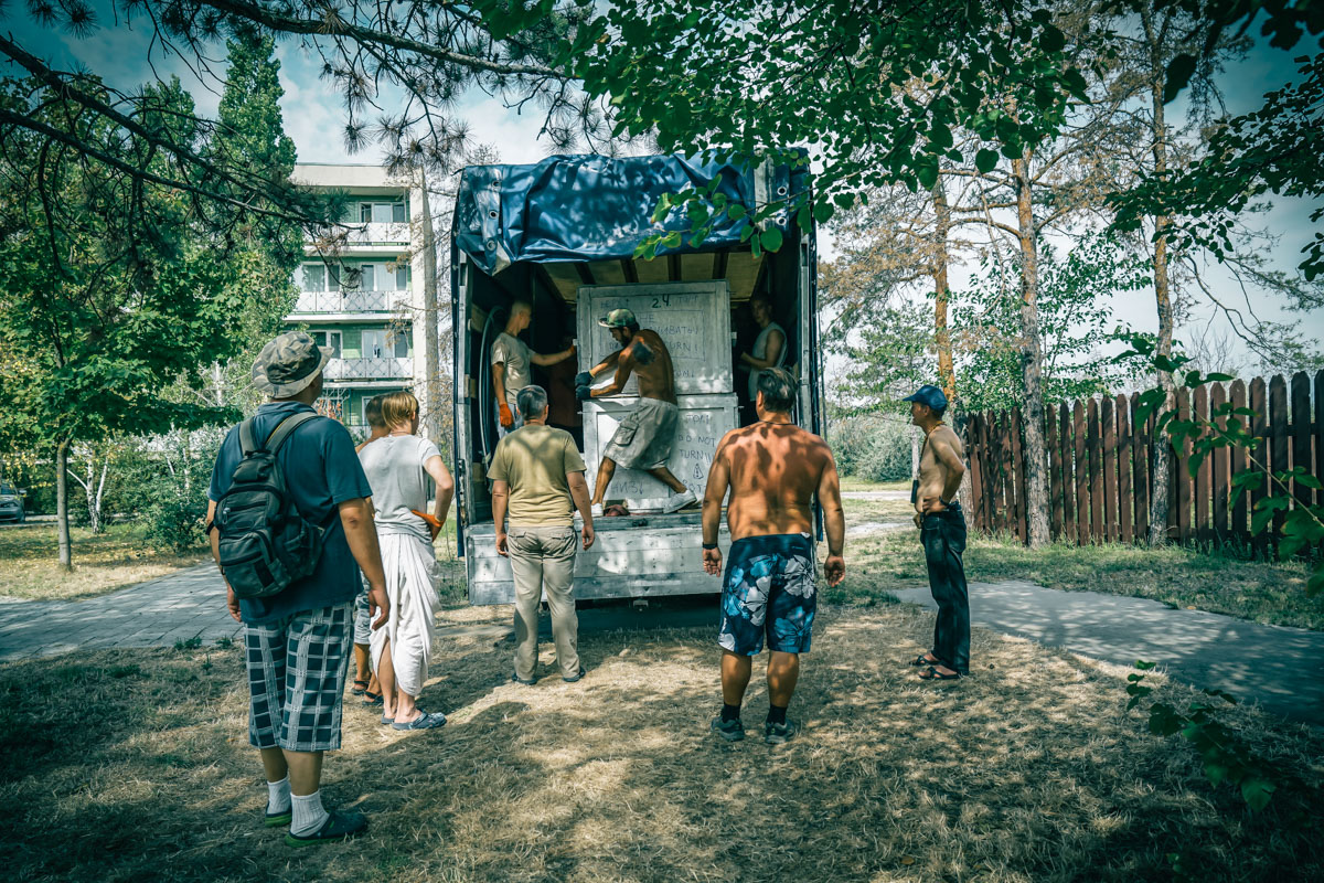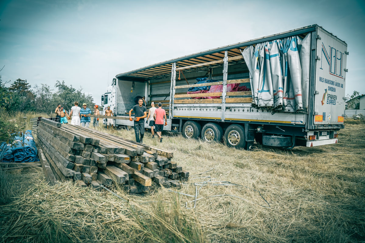 В среду 5 сентября на территорию фестиваля «Бхакти-Сангама» 2018 привезли большой пандал и Божества фестиваля, которые пока разместили в Панча-таттва холе (спортзал Лотоса).