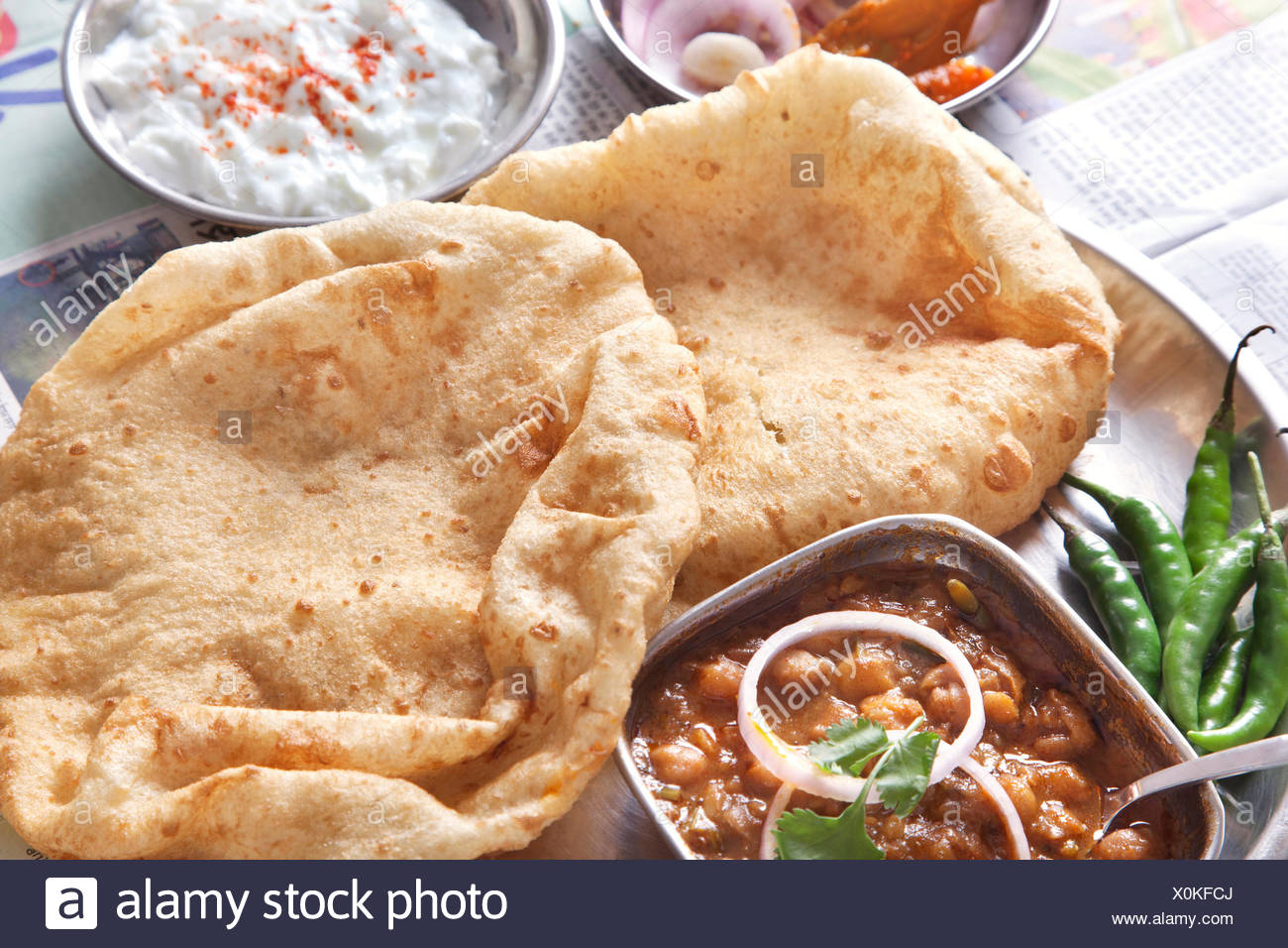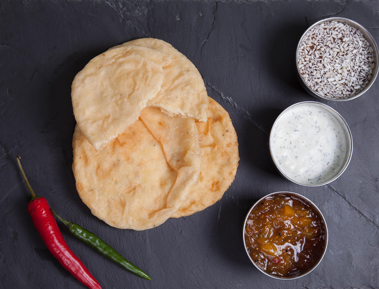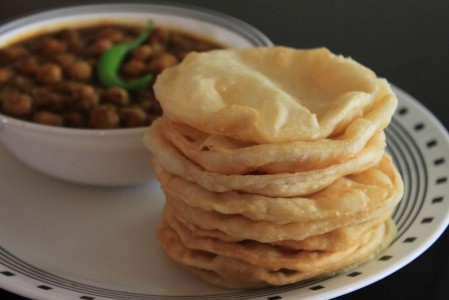 В Индии пышные лепёшки без дрожжей, или «Бхактури», часто подают на завтрак вместе с чанна райтой (турецким горошком со специями) и йогуртом.