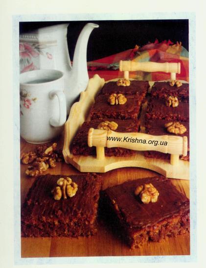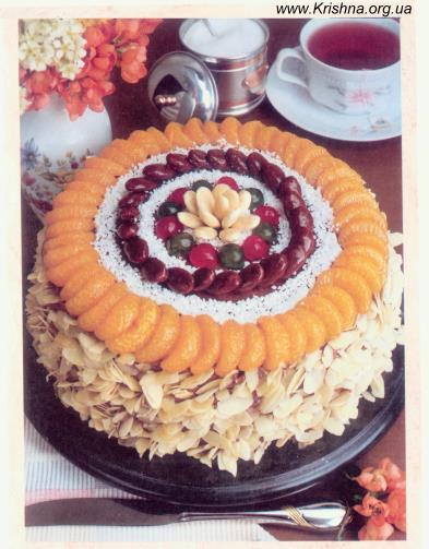 А в 1975 и 1976 годах во время моих путешествий по храмам Соединенных Штатов и Европы я все собирала и собирала разнообразные рецепты приготовления различных блюд без яиц у разных поваров. Более того, когда в 1978 году я приехала в Англию, то обнаружила, что рецепты многих английских и шотландских фруктовых кексов нетрудно переделать в вегетарианский вариант, поскольку для их приготовления нужно всего лишь несколько яиц, которые с легкостью заменяются другими продуктами.